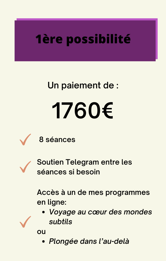 Pour approfondir tes connaissances des mondes subtils et de la connexion, tu peux suivre à ton rythme un de mes 2 programmes en ligne: