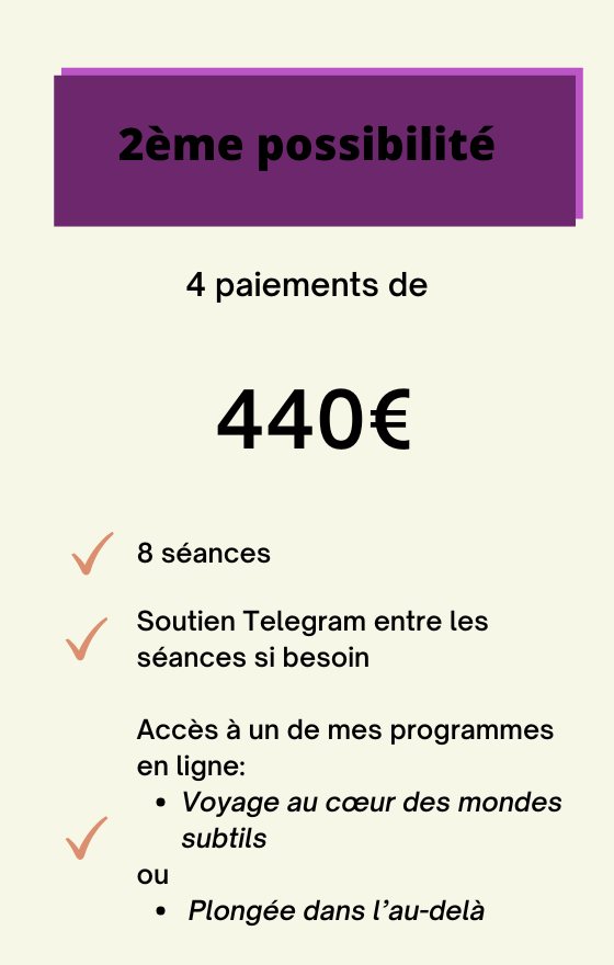 Dans les séances, on ne va pas revivre les expériences du passé. On va se connecter à l’énergie qui les a créées. Les ressentis peuvent être intenses mais jamais plus intenses que ce que tu es capable de traverser. Le suivi entre les séances permet de tamiser également les intensités qui peuvent être rencontrées.